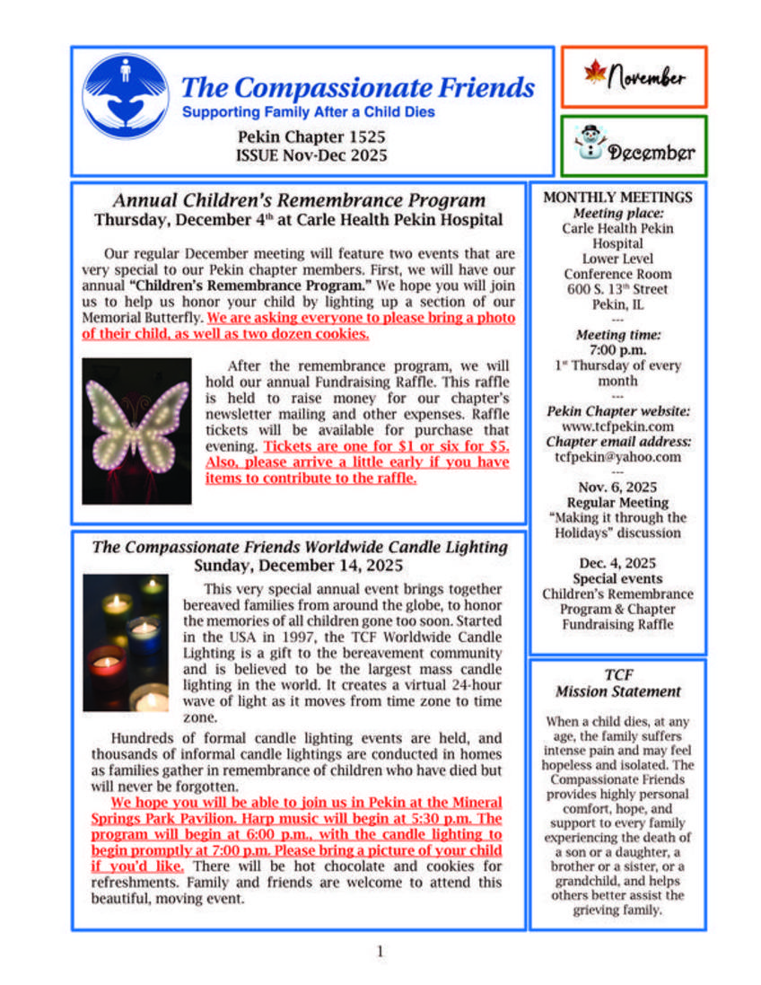 Due to extremely bad weather tomorrow, the Remembrance ornaments has been postponed to December 6th, 2025 at 9:00 AM.